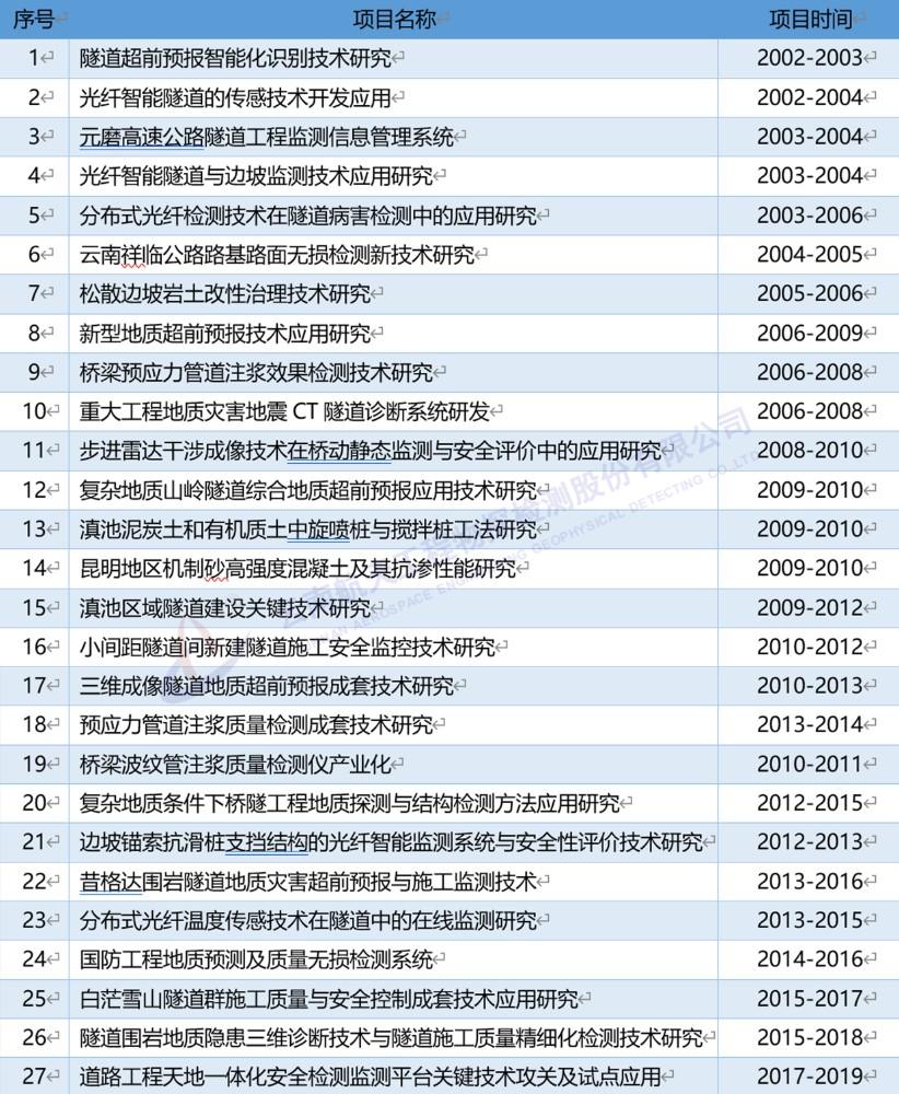 公司源于航天军工,注重研发创新,目前建有云南省许厚泽院士工作站、昆明工程物探与检测领域院士工作站、云南省桥隧工程质量控制和评价实验室等九个科研平台。