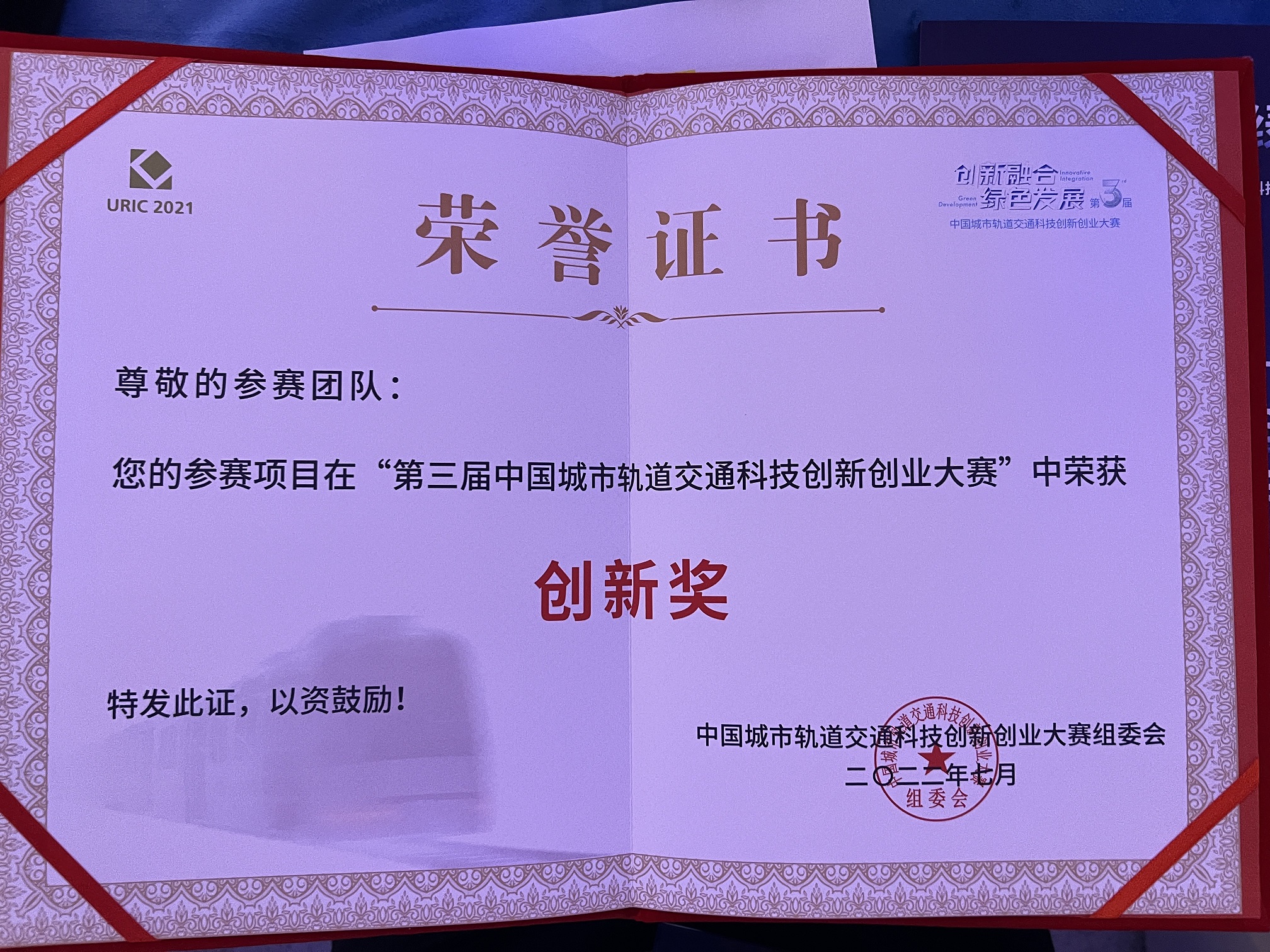 OK138太阳集团喜获第三届中国轨道交通科技创新创业大赛创新奖