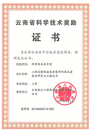 云南省科学技术奖励证书