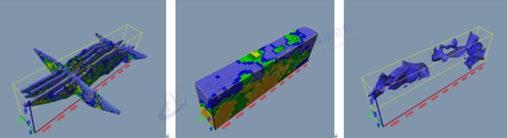 地质雷达三维探测结果——通过CT切片的形式精细反映隧道周边水体三维分布情况